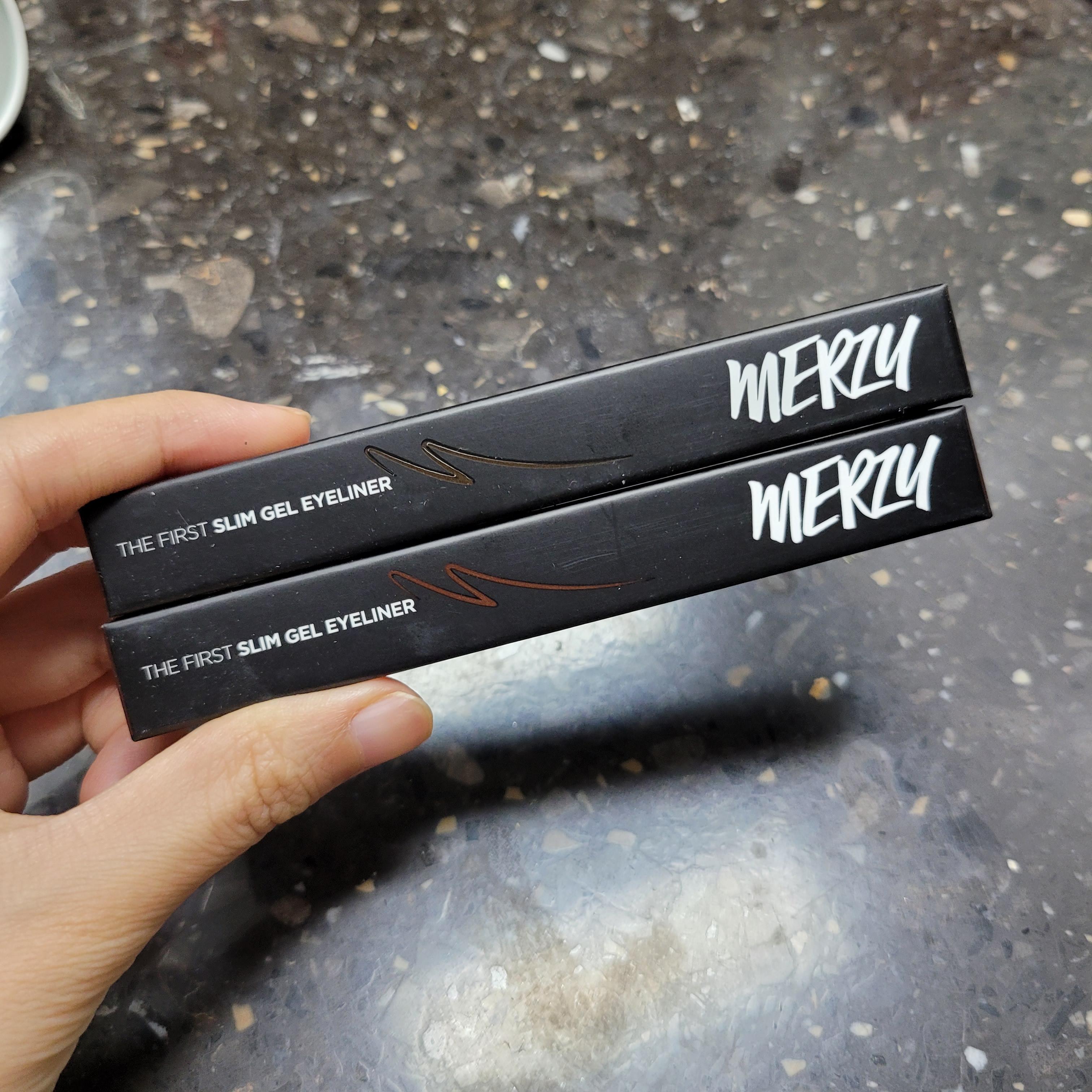카카오톡으로 사서 그런지 배송은 역시나 빨랐다. 다음 날인가 바로 도착한 걸로 기억하고, 틴트가 함께 와서 오배송된건가 놀랬는데 (??) 이벤트로 글쎄 틴트까지 증정함. 머지 마케팅팀 진짜 칭찬해! 틴트도 바로 써봤는데 이름 자체가 오렌지 색이라서 걱정했는데 베네피트 차차틴트랑 색이 완전히 비슷해서 안심했다. 생각보다 쨍한 컬러가 아니어서 레이어드 해서 쓰면 예쁠 듯. 무튼 지금은 머지 슬림 젤 아이라이너 후기를 쓰고 있었으니 본론으로 다시 돌아가서 아이라이너 두께가 무려 1.5mm 초슬림 라인이기 때문에 점막을 채우는용으로 딱 좋을 거 같아서 구매했다. 릴리바이레드가 좀 더 가격이 저렴했는데 머지로 선택한 이유는 간단했다. 카페 글을 찾아보니 릴리가 절대로 안번진다고들 하더니 막상 엄청 번진다는 평을 보고나서 그냥 '머지'로 사 봤다.