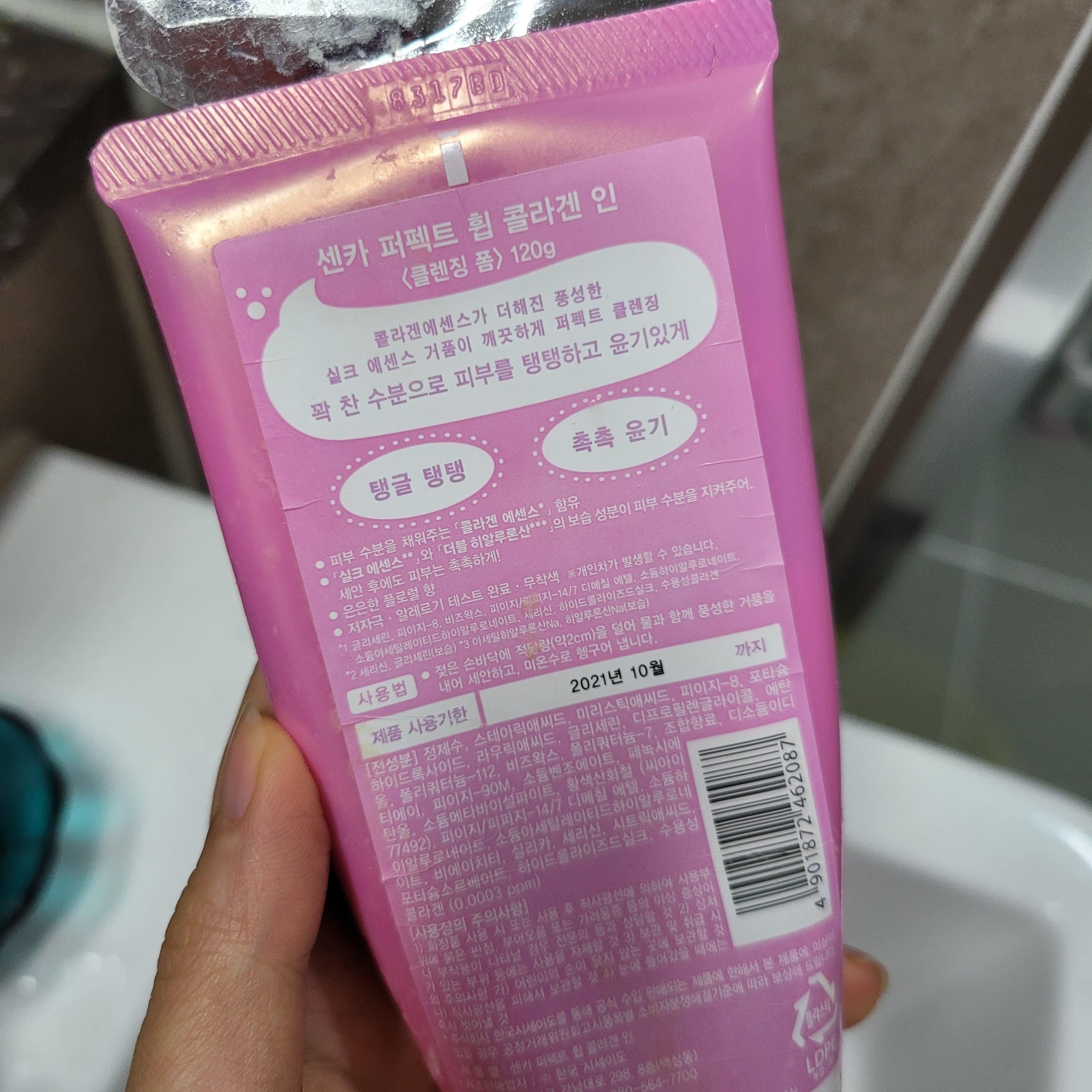 제 기억에 1년전에 구입을 했지만 많이 사용하지는 못했어요. 왜냐면 이또한 제 피부에는 굉장히 자극적이었기때문이에요. 근데 잘 생각해보면 세정력하나는 끝내줬던 거 같아서. 센카 페퍽트 휩 콜라겐 인은 블루버전이랑 다르게 안에 콜라겐에센스가 들어갔다고해요. 그래서 사용하고나면 속당김이 덜하고 피부가 더 촉촉하고 탱탱해진 기분이 든다는 것. 제가 예전에 애정했던 블루버전은 진짜 세정력이 쎄서 사용하고나면 피부가 뻑뻑할 정도였는데 20대때는 그게 괜찮았지만 30대때는 도저히 땡겨서 쓰라고해도 못 쓸 거 같아요.