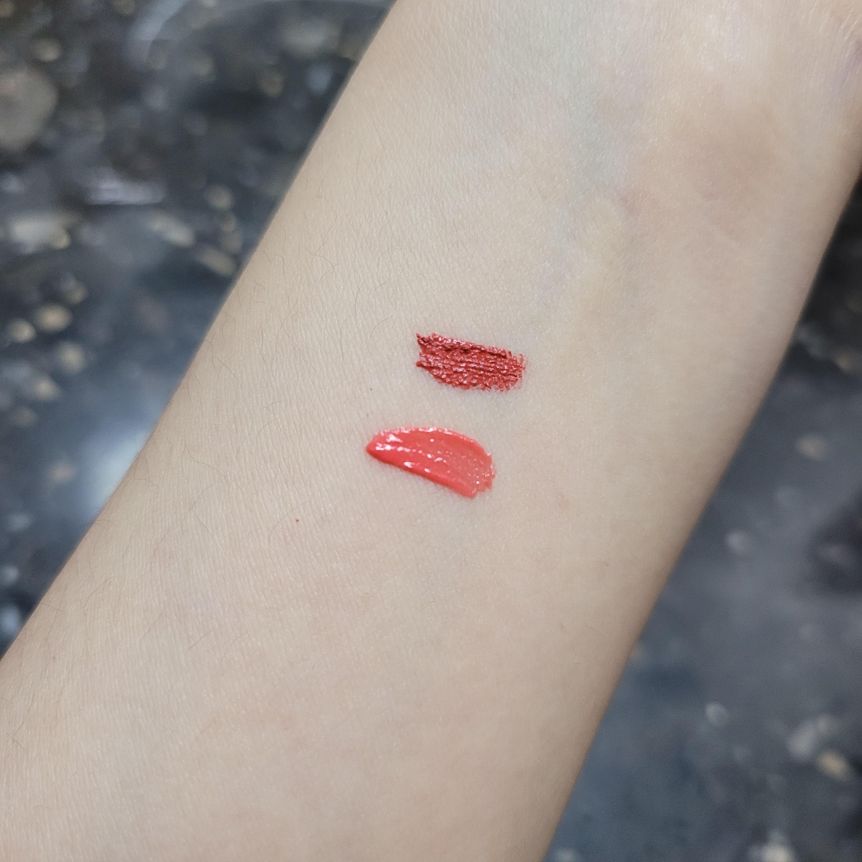 컬러를 확인해주기 위해 발라봤는데 아래 좀 더 옅은게 예쁨뽀짝, 위에꺼가 프로청순러이다. 두 개의 조합 진짜 못 잃어 ㅠㅠㅠㅠㅠ